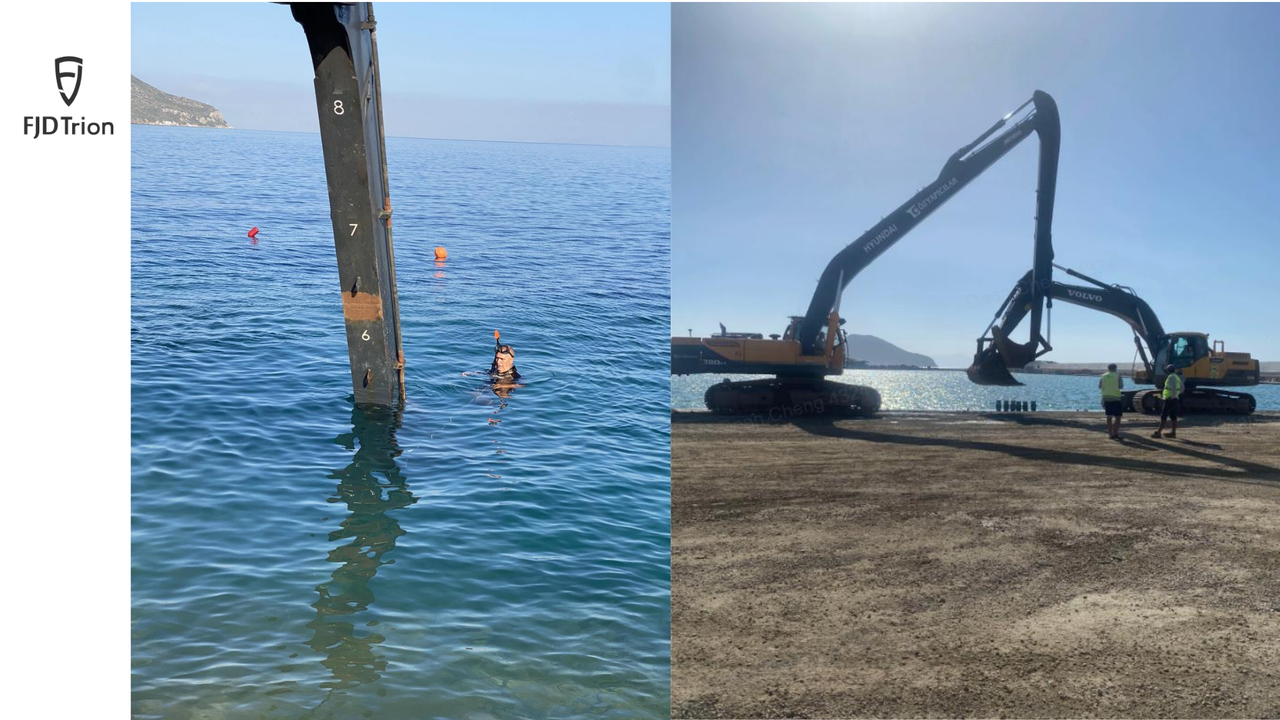 In Bodrum, Turkey, FJD Trion EC100 was used in a coastal embankment project that involved underwater excavation.
