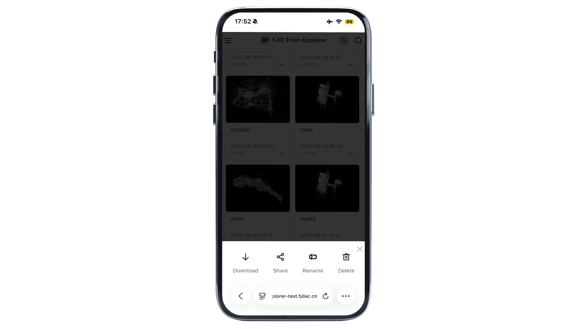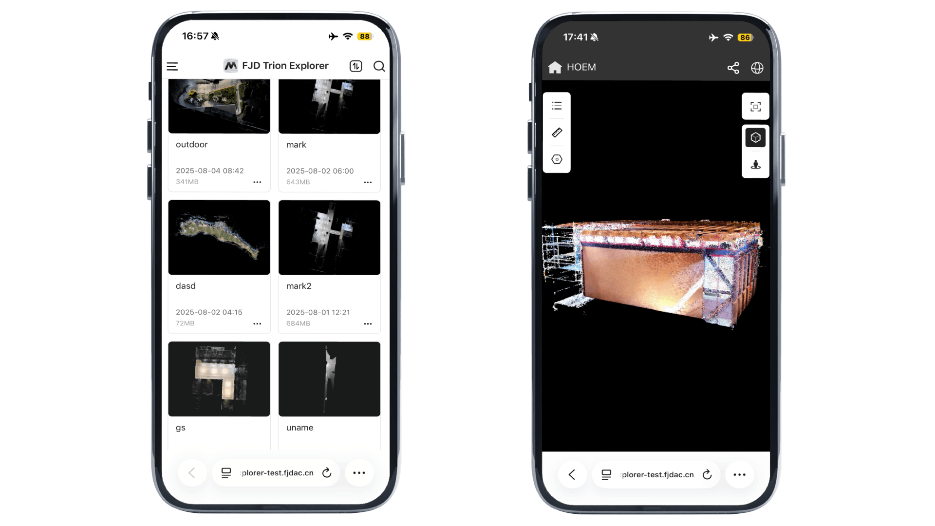 The Trion Model PC version 205A now supports sharing data to the FJD Trion Explorer, including 3D Gaussian models, 3D Gaussian fly-through videos, and associated marker points.