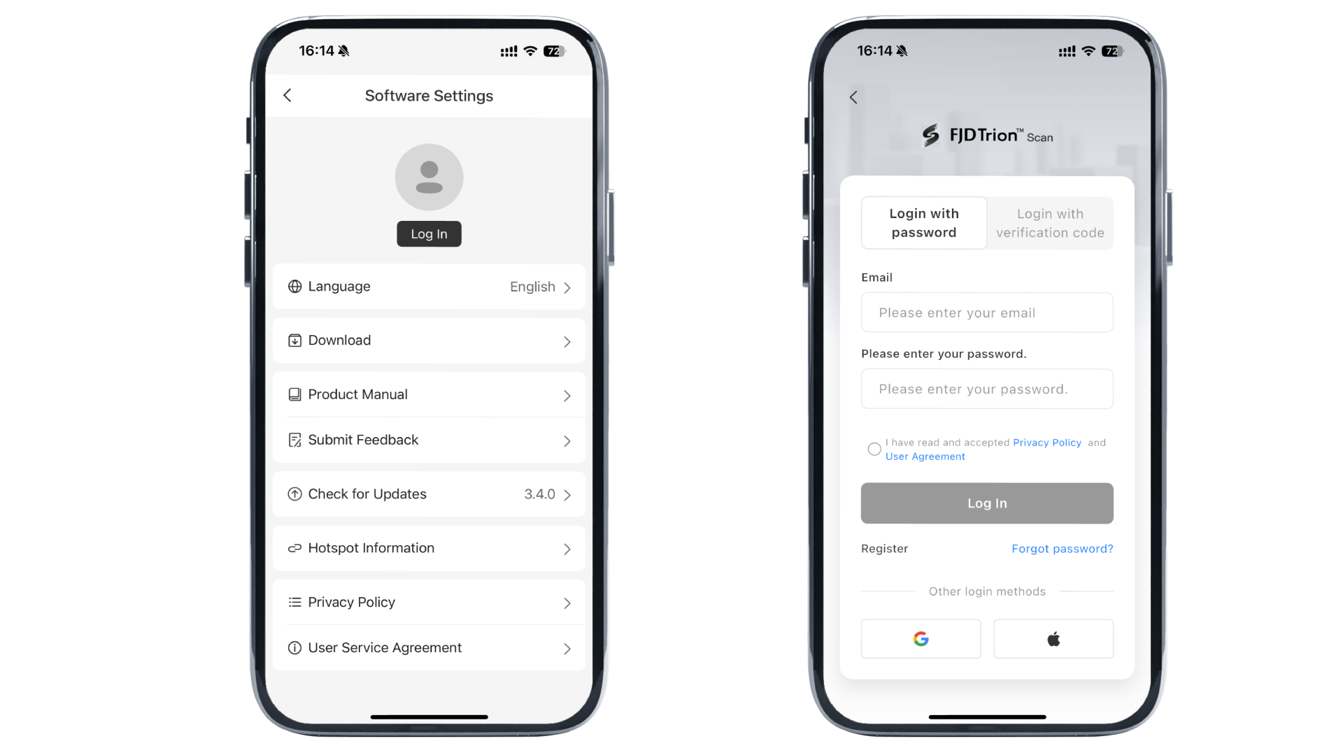 New iOS users: Search FJD Trion Scan on the  App Store to download and install.