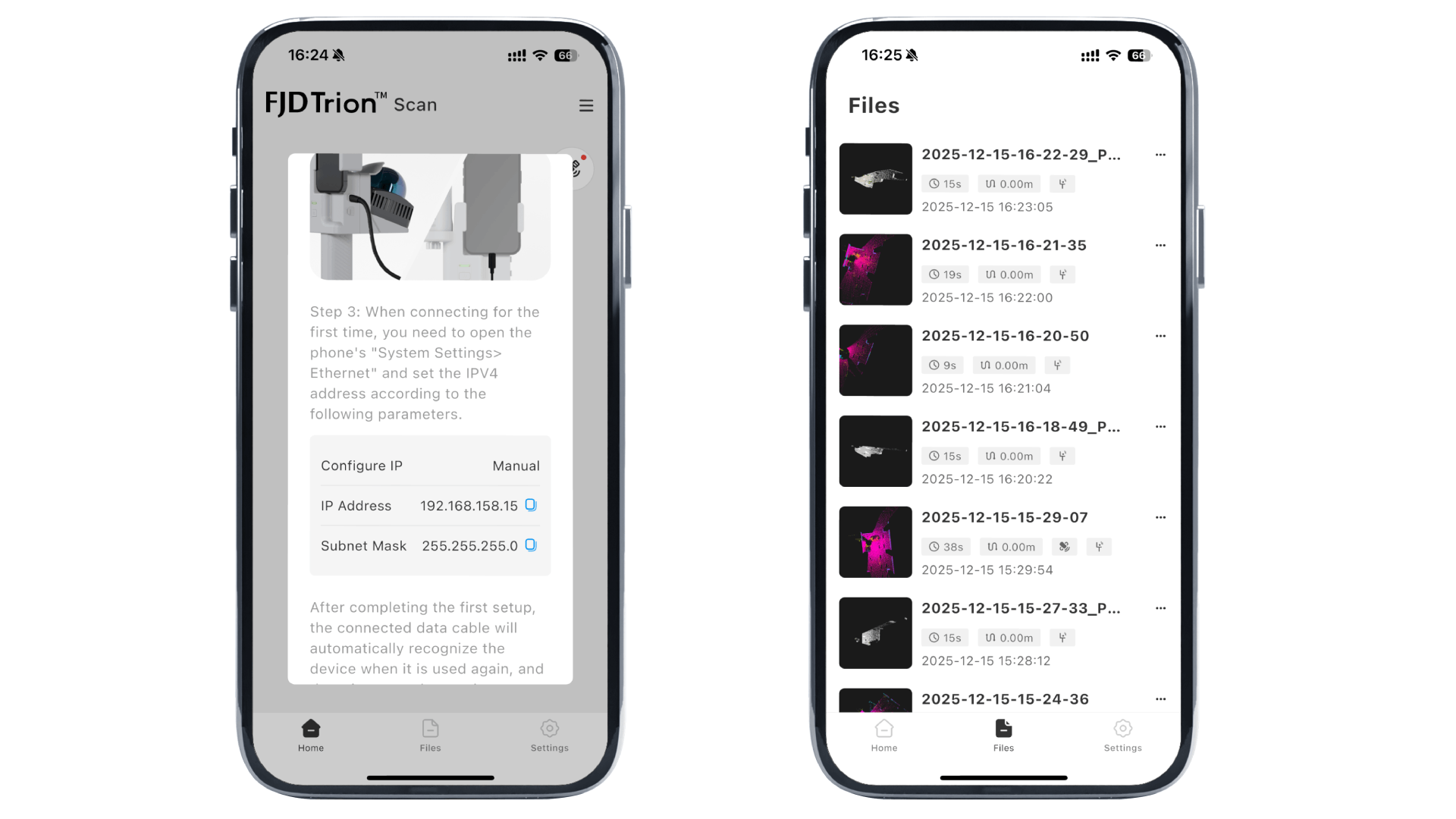 Connect to the V4e LiDAR scanner on your iPhone to scan, manage data, and perform other tasks.