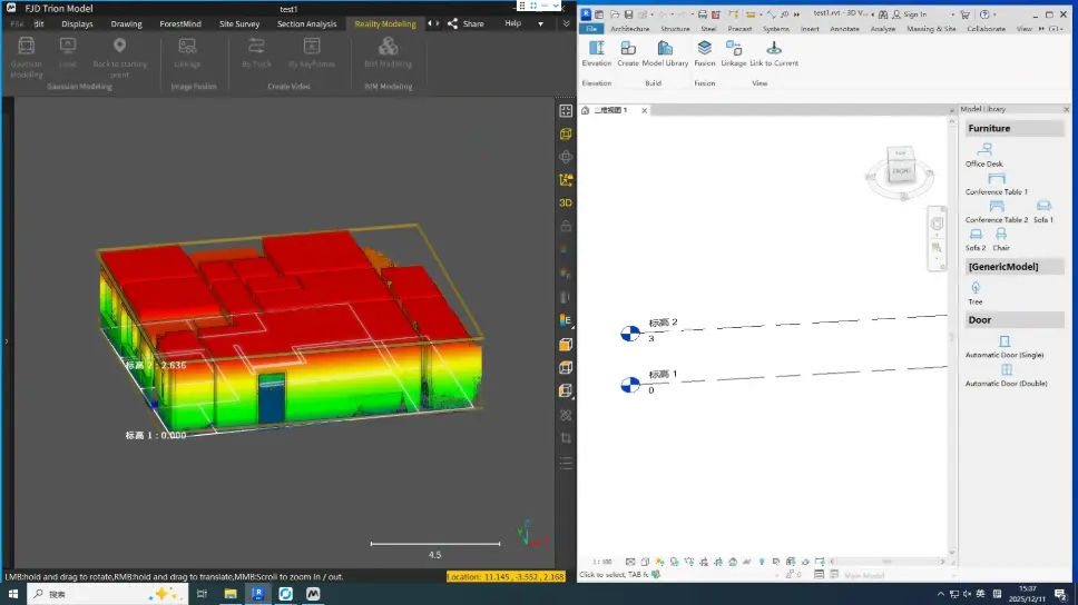 • Enables view synchronization between FJD Trion Model and Revit.