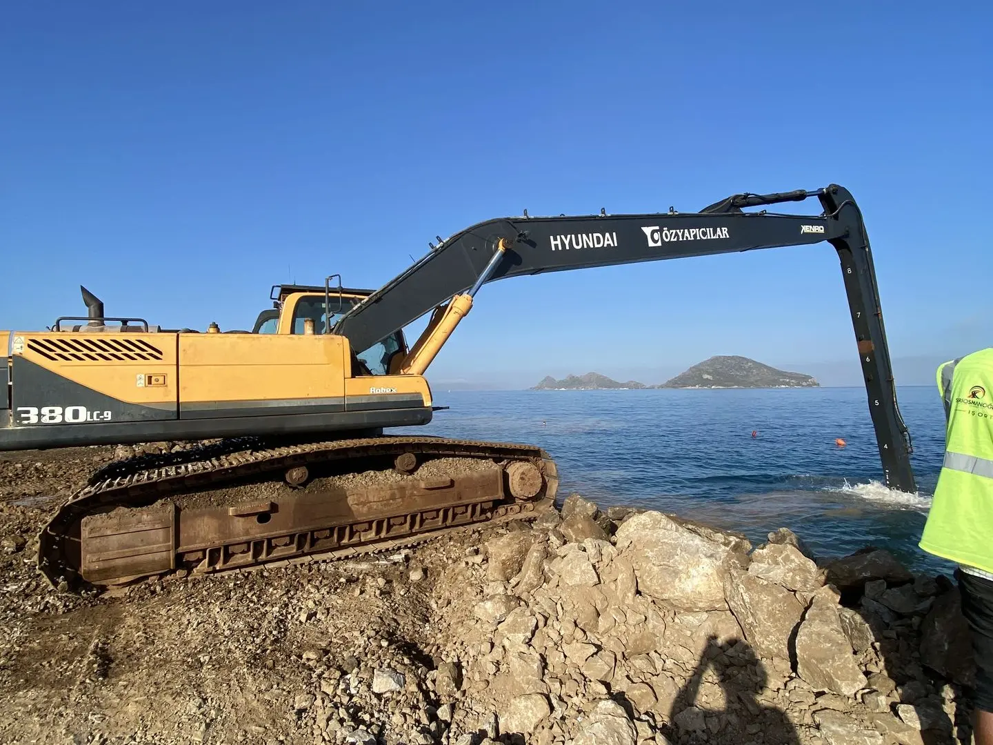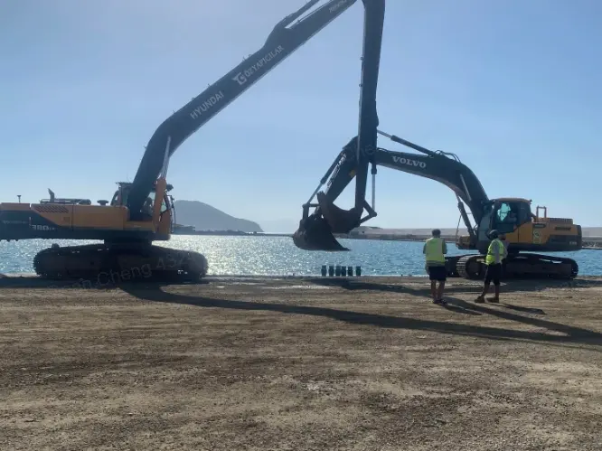 Building coastal breakwaters, walls built out into the sea to protect the coastline, is hard when facing the powerful force of the ocean. As operators are required to dig and move earth underwater, they often can't see the bucket very clearly and need human assistance to keep every step perfect. Even small mistakes can lead to major problems—wasting time, materials, and money.