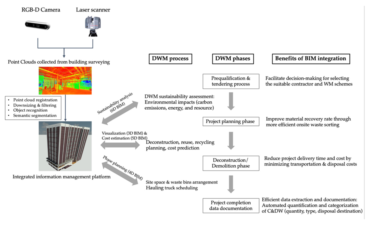 Source: Han D, Kalantari M, Rajabifard A. Building Information Modeling (BIM) for Construction and Demolition Waste Management in Australia: A Research Agenda. Sustainability. 2021; 13(23):12983. https://doi.org/10.3390/su132312983