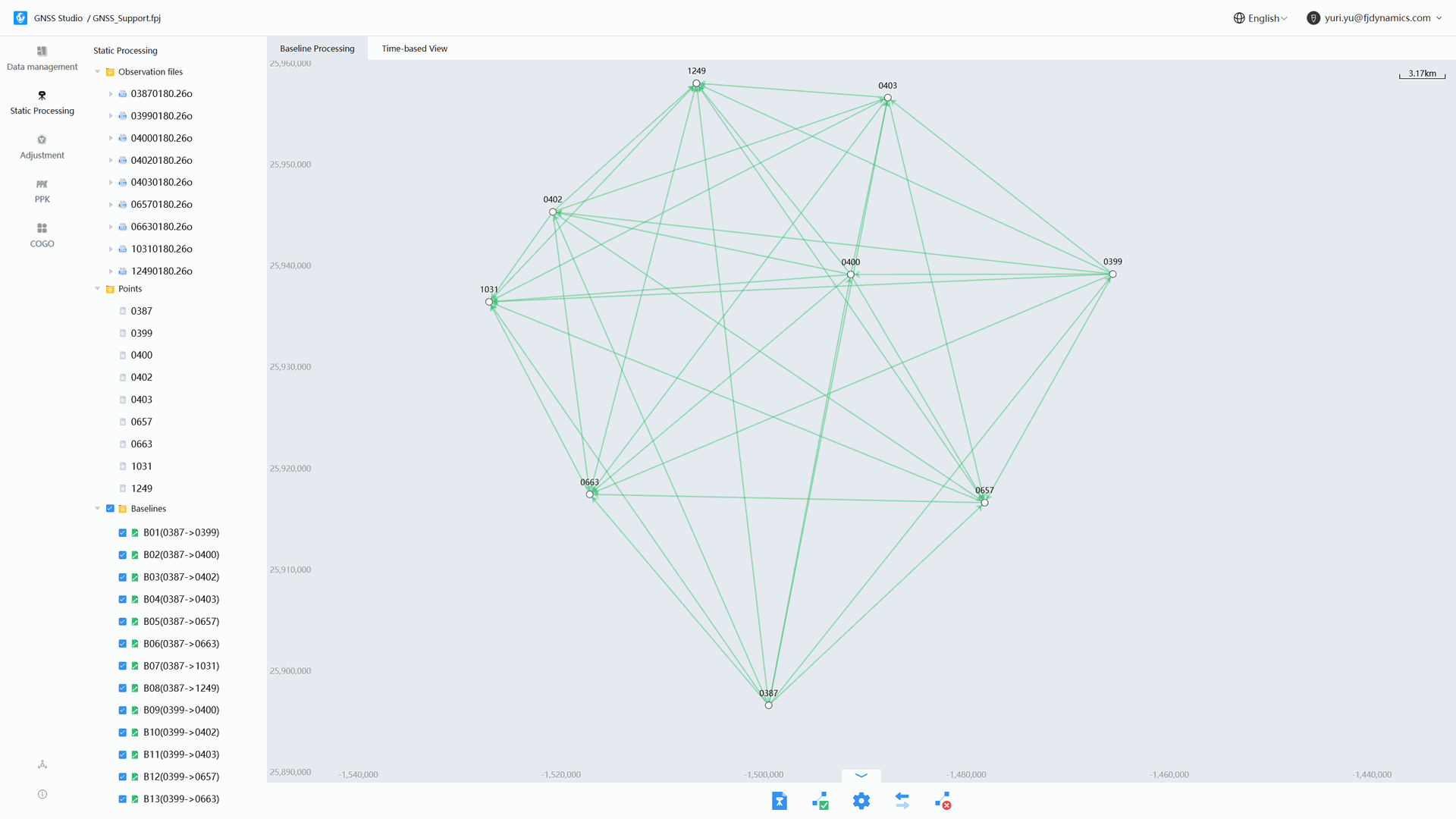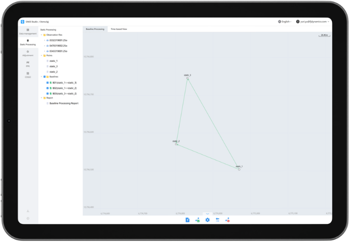 Set up site control points to provide references for construction and surveying. GNSS Studio processes static GNSS data and connects baselines to ensure all points in the project are accurately aligned.