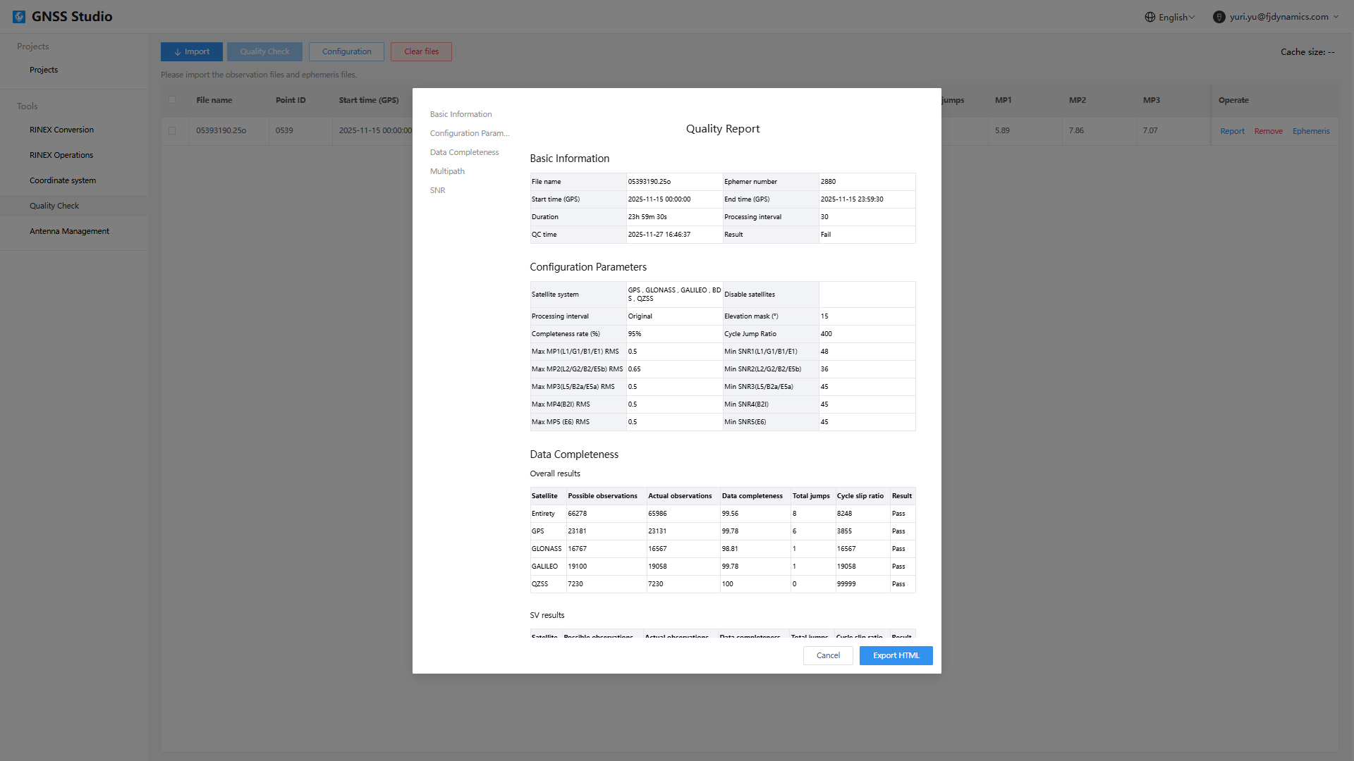 Organize, clean, and preprocess raw GNSS observation files before post-processing. GNSS Studio allows you to merge or split files, reduce unnecessary data, decimate points, and perform quality checks.