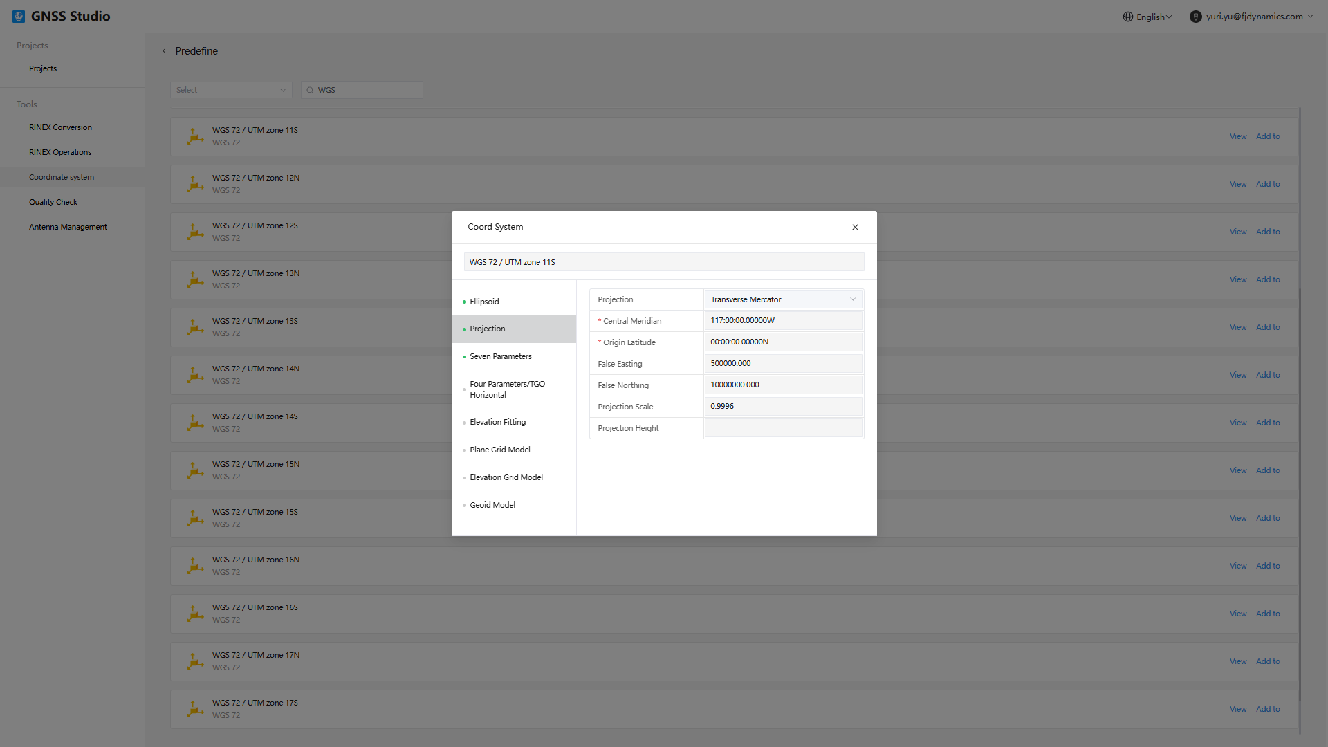 Configure project coordinates using over 6,000 predefined local coordinate systems. GNSS Studio ensures your results match local project coordinates, minimizing rework before construction.